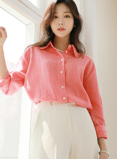 糖 颜色 亚麻 宽松 宽松 袖口 衬衫