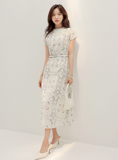 优雅 图案 线条 古典 长款 雪纺 连衣裙
