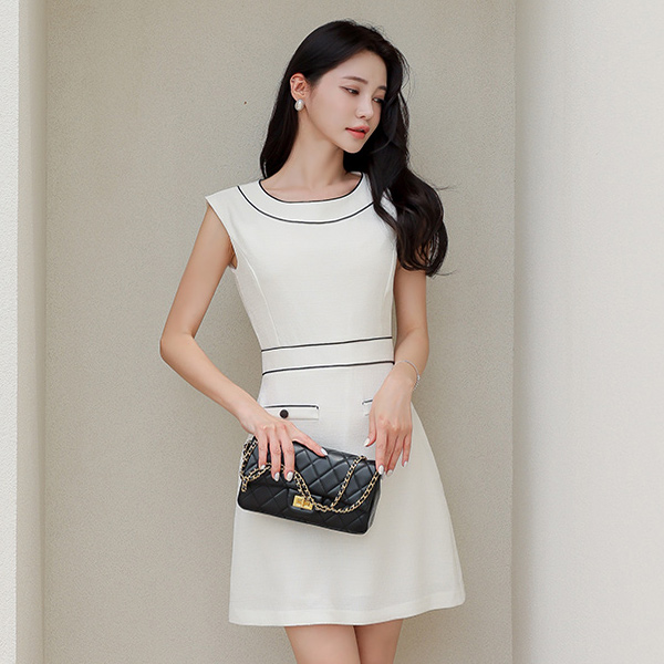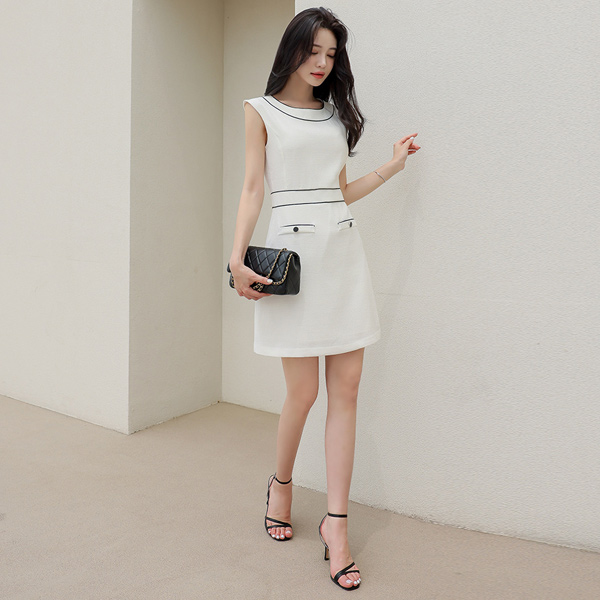 简单 配色 衬里 背心 连衣裙