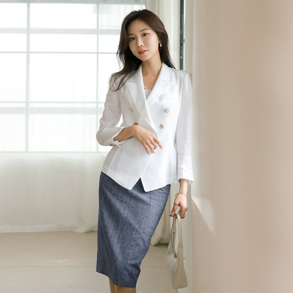 哑光 Silver 点缀 修身 亚麻 夹克