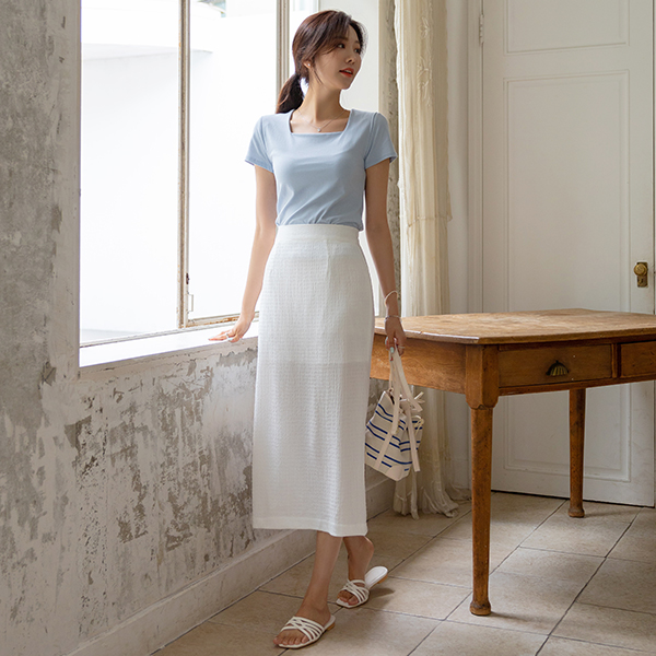 日常 细密 方领 비침방지 T恤衫