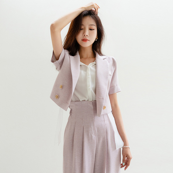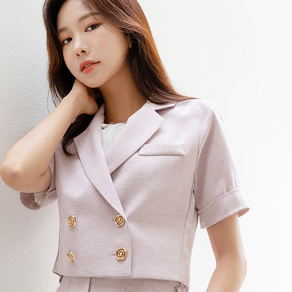 玫瑰 扣子 袖 卷边 7分裤 粗呢 夹克