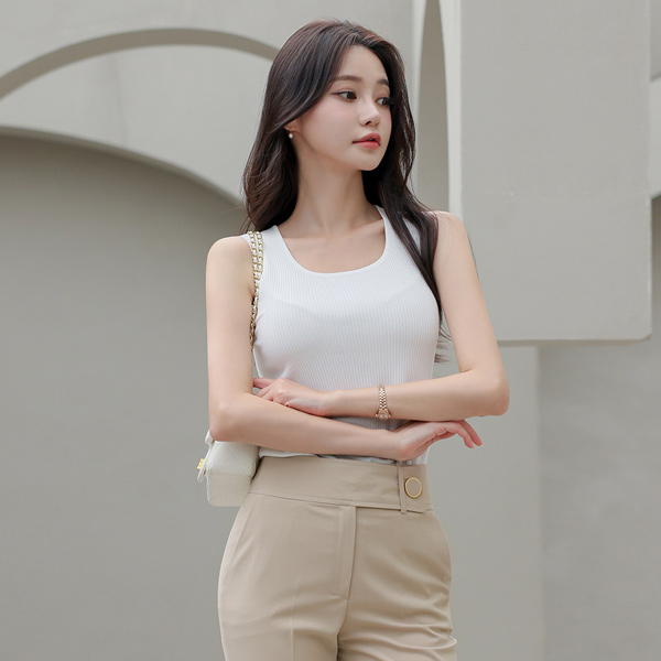 凉爽 条绒 U领 针织衫 背心