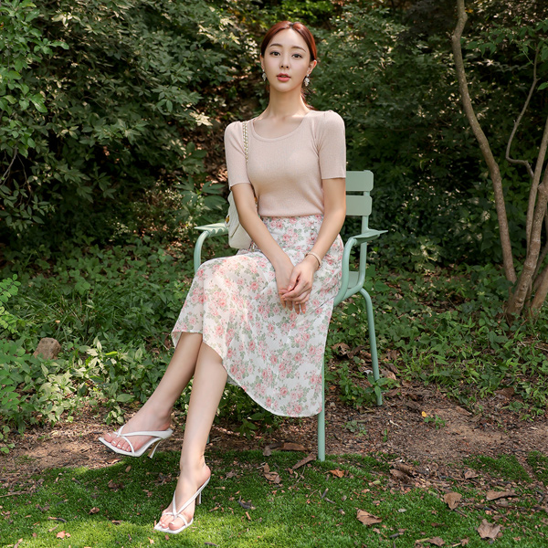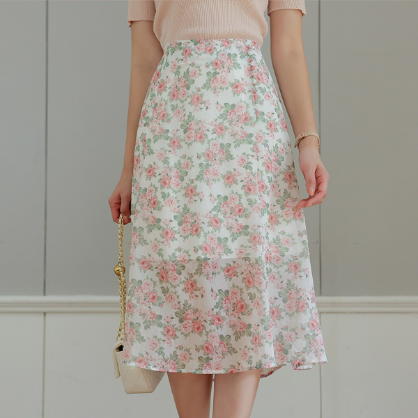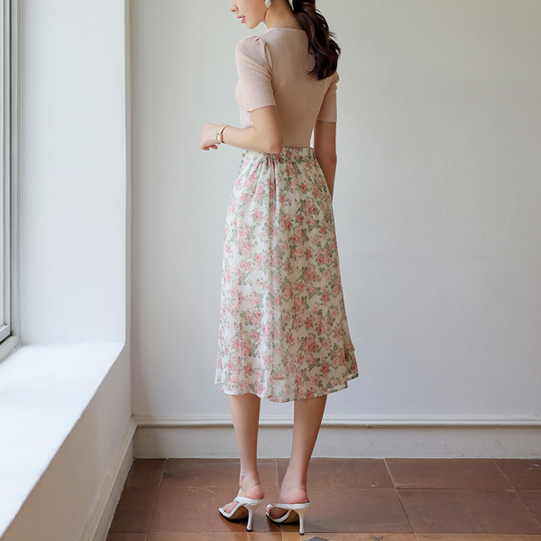玫瑰 花纹 콩 扣子 雪纺 裙子