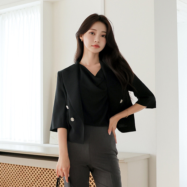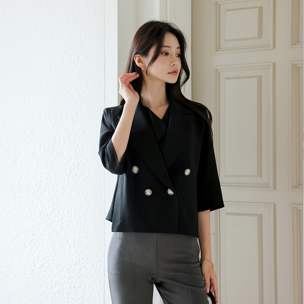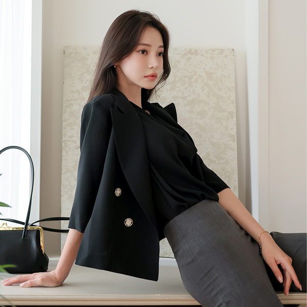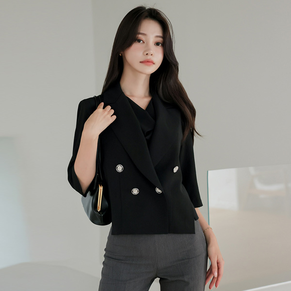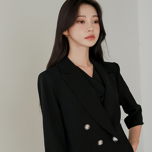 侧纽 开衩 不规则 双排扣 夹克