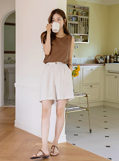 软绵绵软的 亚麻 质地 后侧松紧带 短上衣 裤子