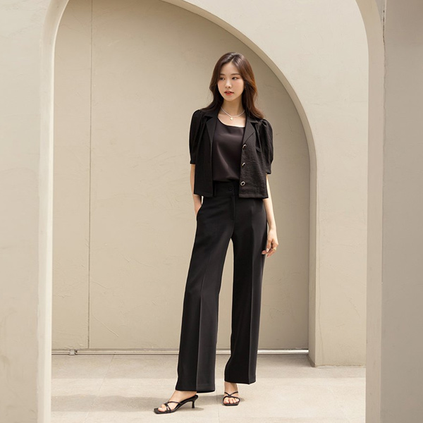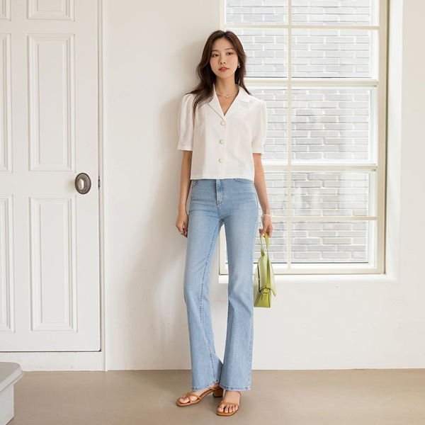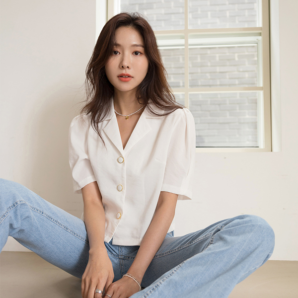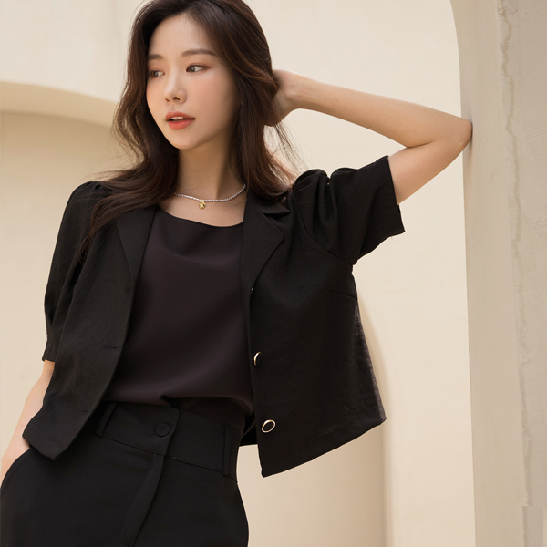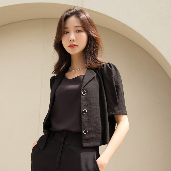 摩登 黄金 配色 扣子 泡泡袖 袖 罩衫 夹克