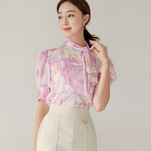 链条 围巾 泡泡袖 罩衫