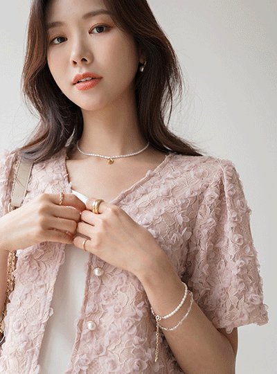 浪漫 玫瑰 蕾丝 V字领 开衫 夹克