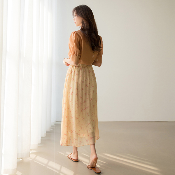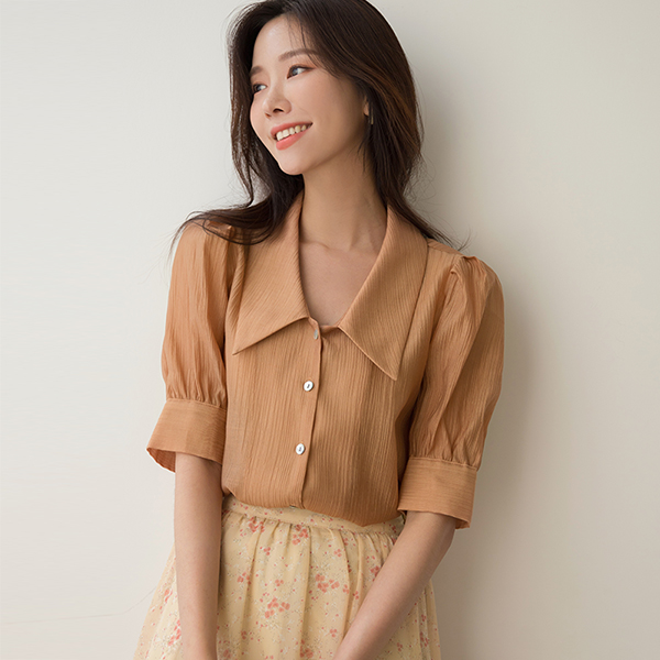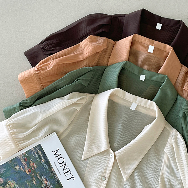 女性化的 泡泡袖 袖 领子 点缀 去皱纹 罩衫