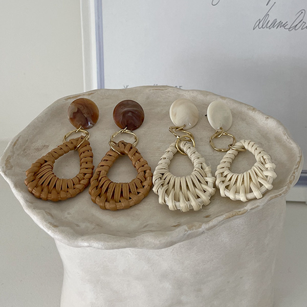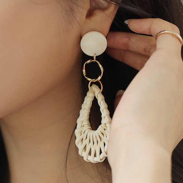 大理石 藤条 圆领 戒指 大 耳环