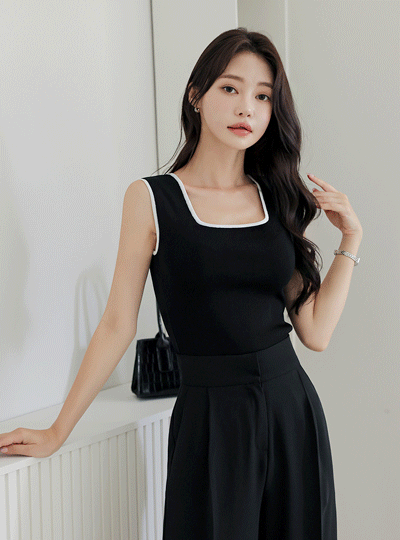 方领 线条 配色 背心 T恤