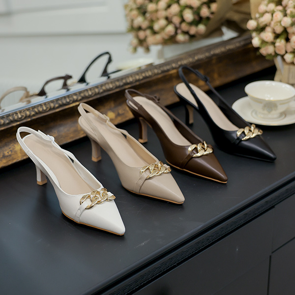 秋季 黄金 链条 露脚后跟鞋 高跟鞋