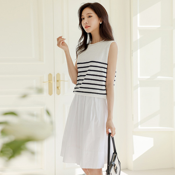 圣贤 条纹 图案 棉 背心 针织衫