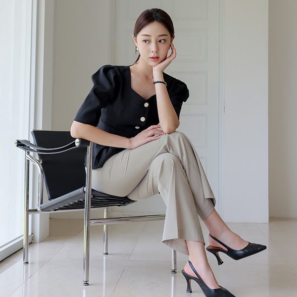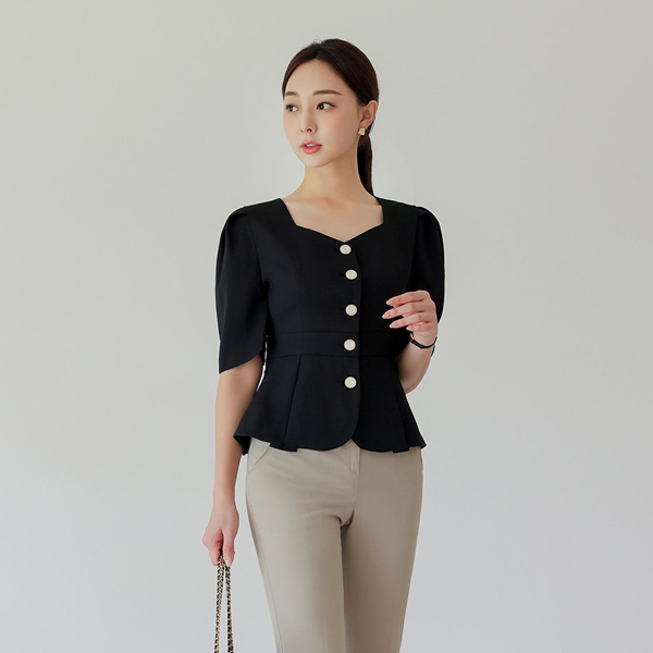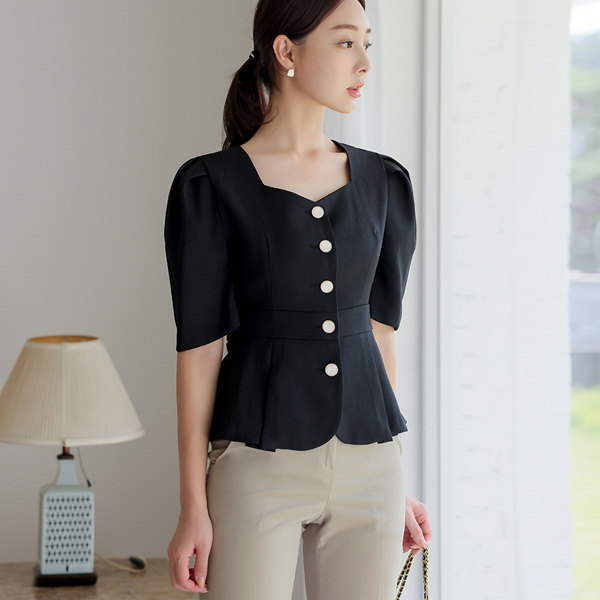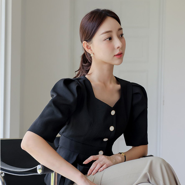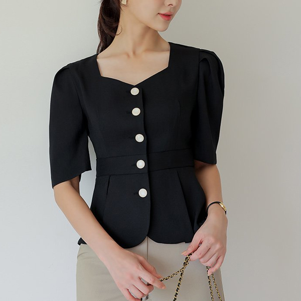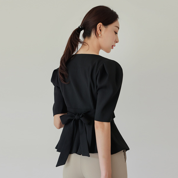 心形领 后面蝴蝶结 泡泡袖 短袖 夹克&罩衫