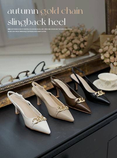 秋季 黄金 链条 露脚后跟鞋 高跟鞋