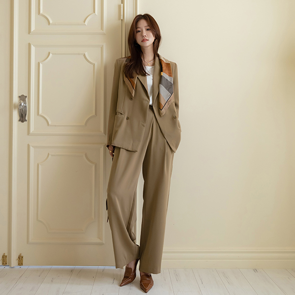 Soft ODE 스틸 双 扣子 夹克 (腰带SET)