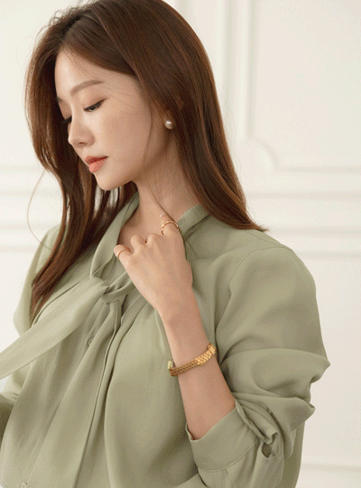 波浪 点缀 Silver&黄金 分层 戒指(7set)