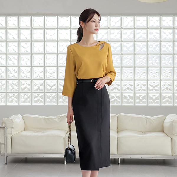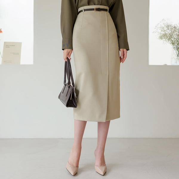 斜线 开叉 长款 束带 裙子