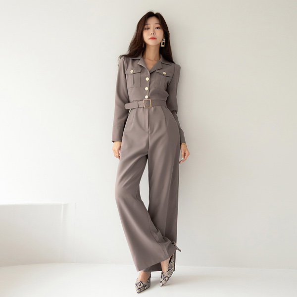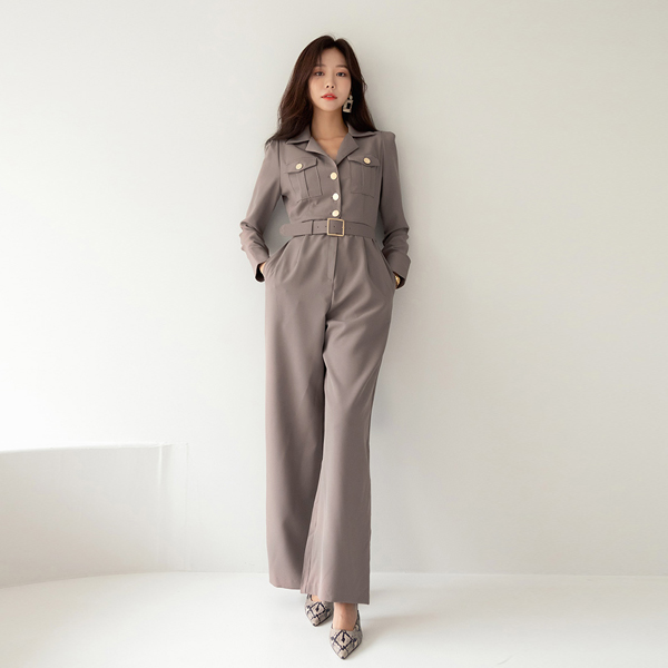 奢华裙 金色纽扣 宽绰 连体裤(腰带SET)