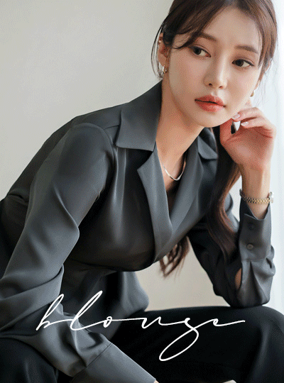 Ellin 绸缎 斯利姆 细褶 领子 罩衫