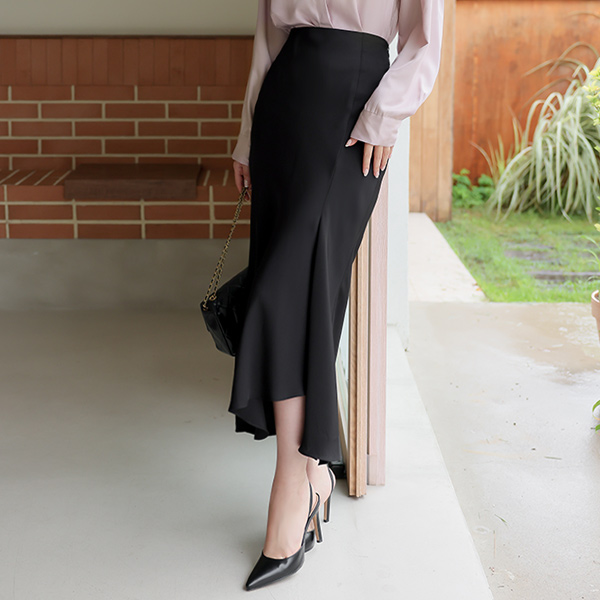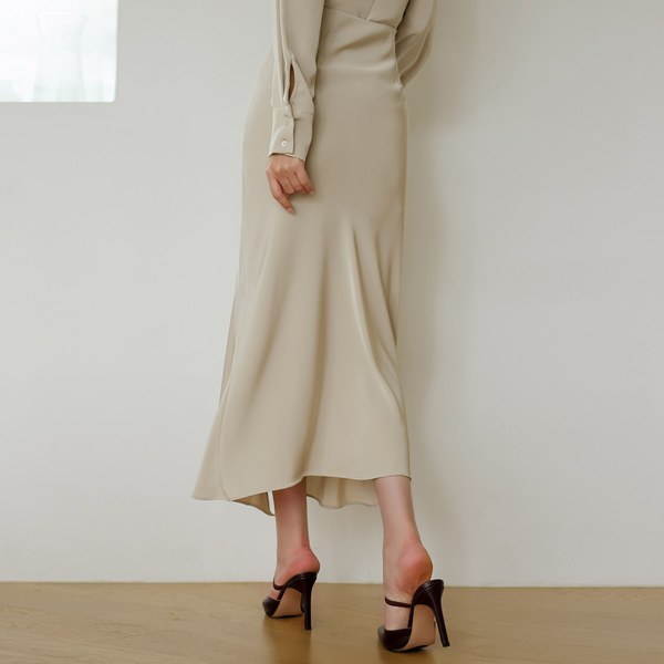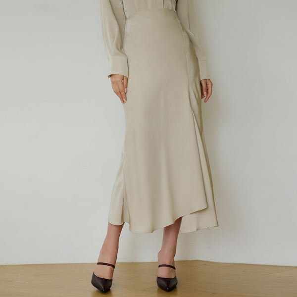 Ellin 绸缎 深 开衩 不规则 裙子