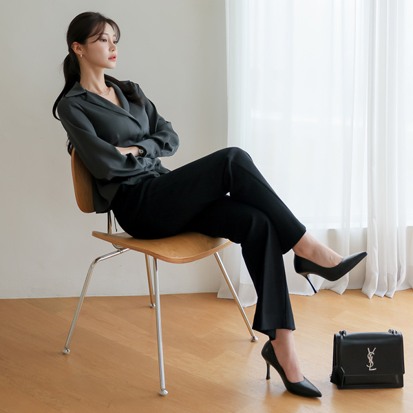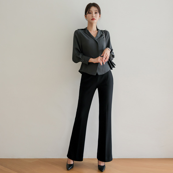 Ellin 绸缎 斯利姆 细褶 领子 罩衫