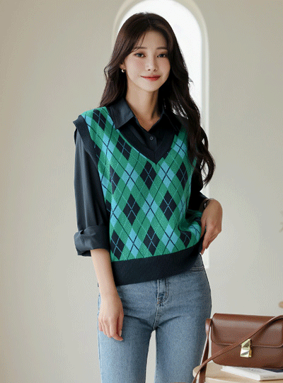 菱形花纹 图案 针织衫 马甲