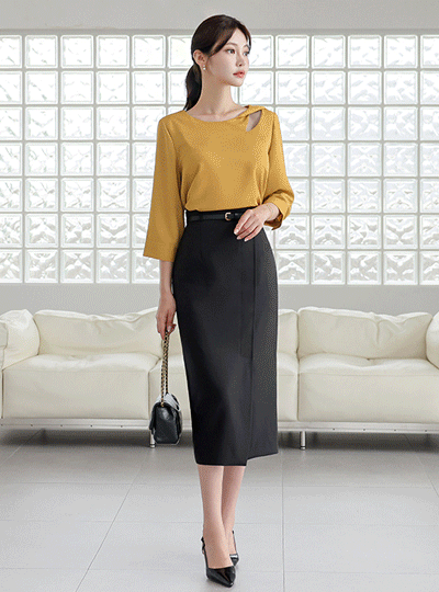 斜线 开叉 长款 束带 裙子
