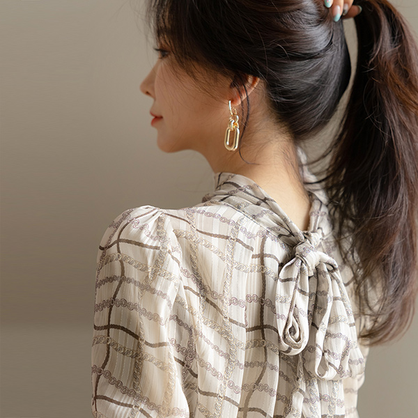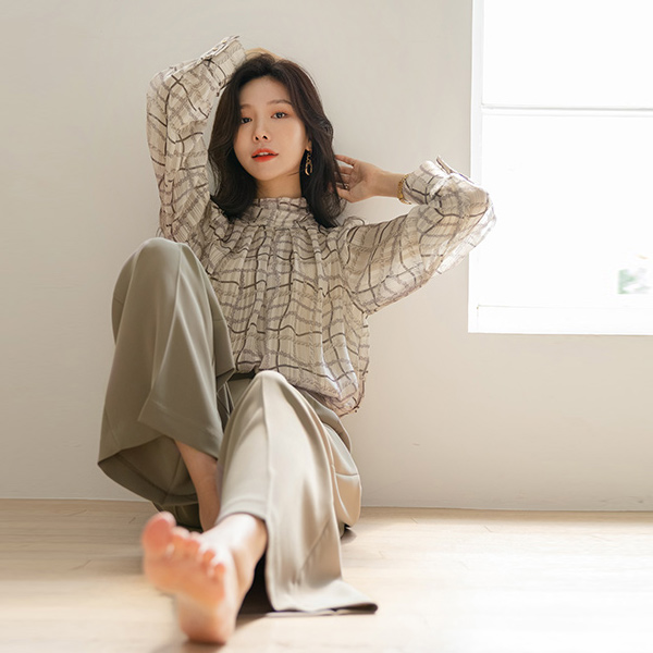 高级的 包 围巾 图案 透视 高龄 罩衫