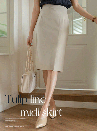 郁金香 线条 点缀 中长 裙子
