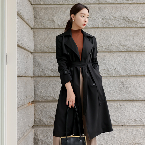 柔丝 颜色 双 扣子 风衣 大衣