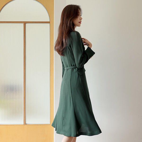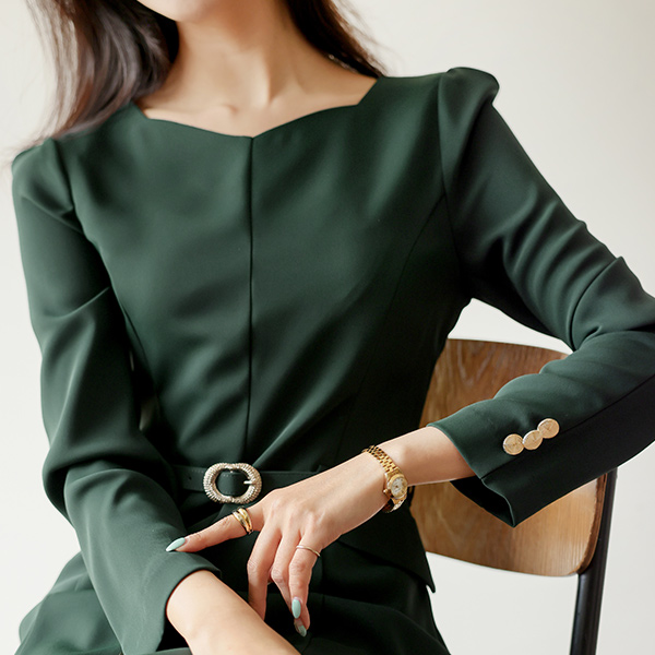 优雅 黄金 带扣 点缀 A字型 连衣裙 (腰带SET)