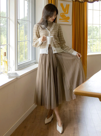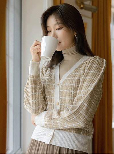 浪漫 泡泡袖 袖 珍珠 粗呢 针织衫 开衫