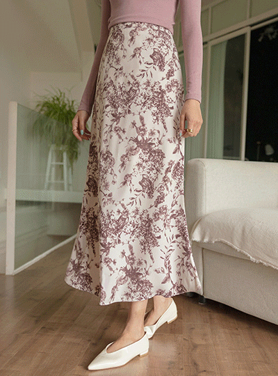 女性化的 图案 美人鱼 后侧松紧带 线条 裙子