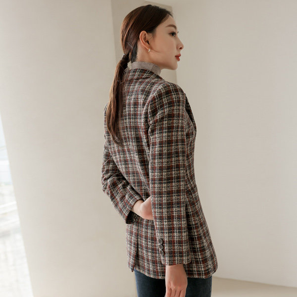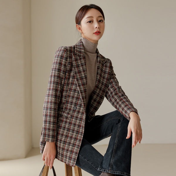 多色 颜色 格子 双排扣 短上衣 夹克