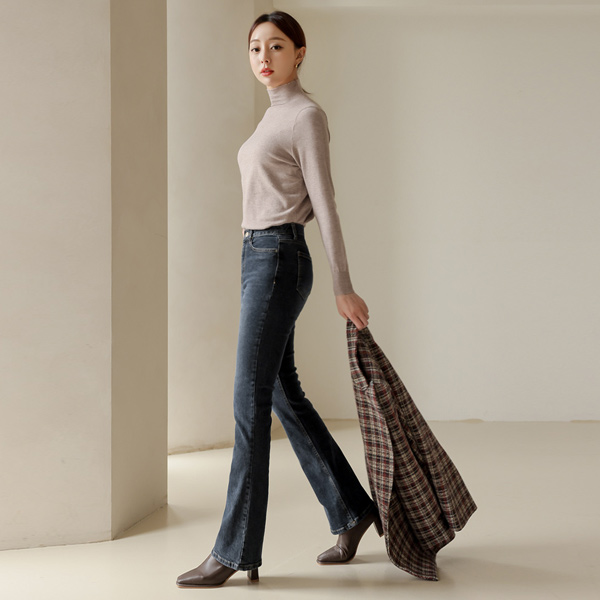 休闲风格 喇叭 弹力 长款 牛仔色 裤子