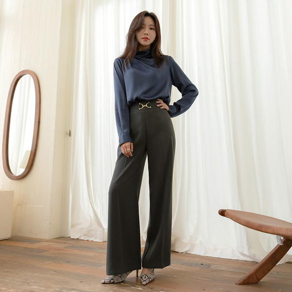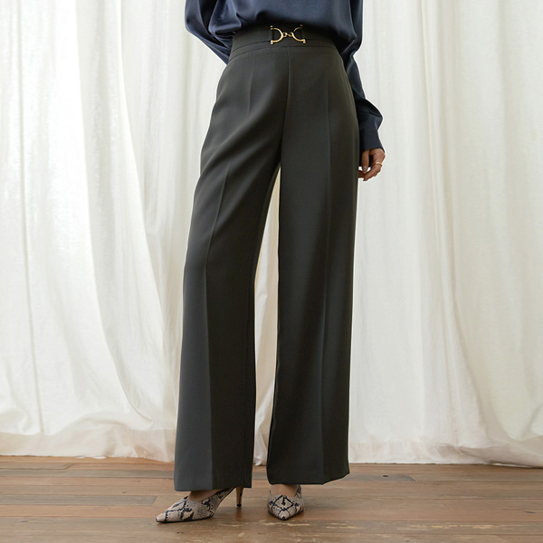 奢华裙 带扣 点缀 高腰 宽松 宽松长裤
