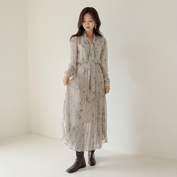 花纹 图案 领带 褶边 雪纺 连衣裙
