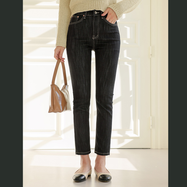 纯正 缝线 点缀 非水洗 修身一字 牛仔色 裤子
