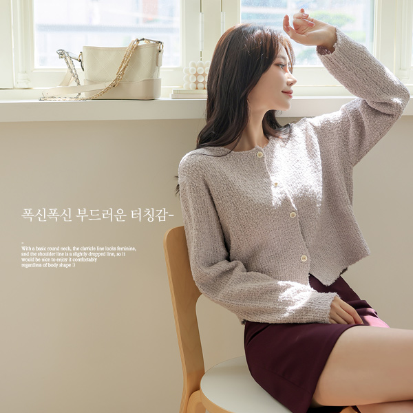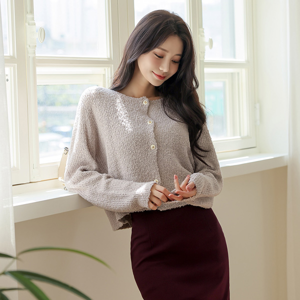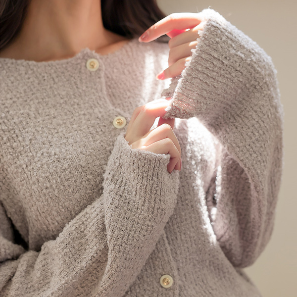 圆领 配色 扣子 结子花式 开衫