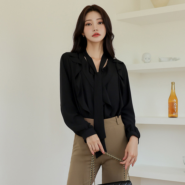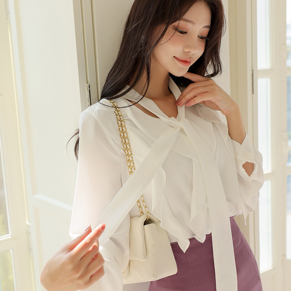 蜂蜜 敞开式 荷叶 领带 罩衫