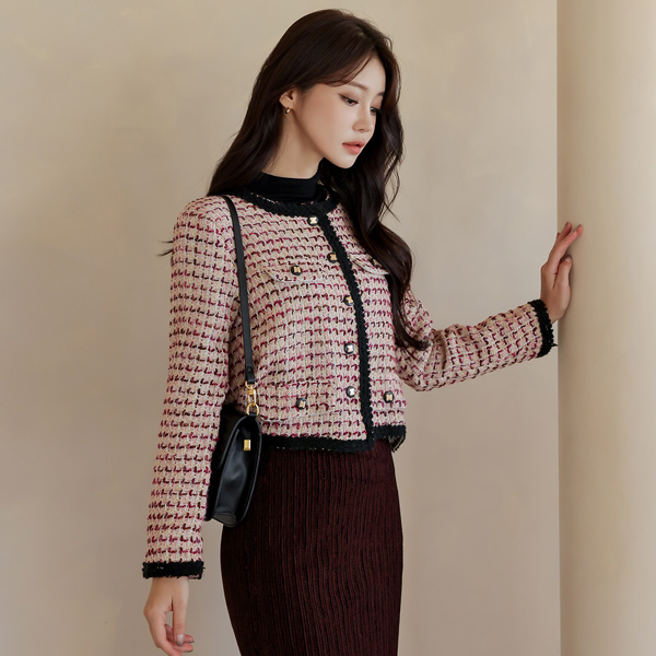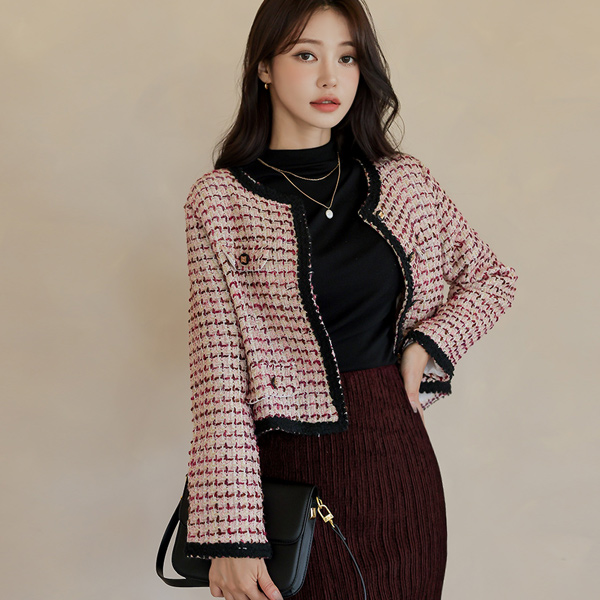 糖 配色 圆领 羊毛 粗呢 夹克
