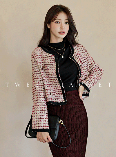 糖 配色 圆领 羊毛 粗呢 夹克