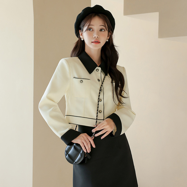 配色领子 7分裤 夹克