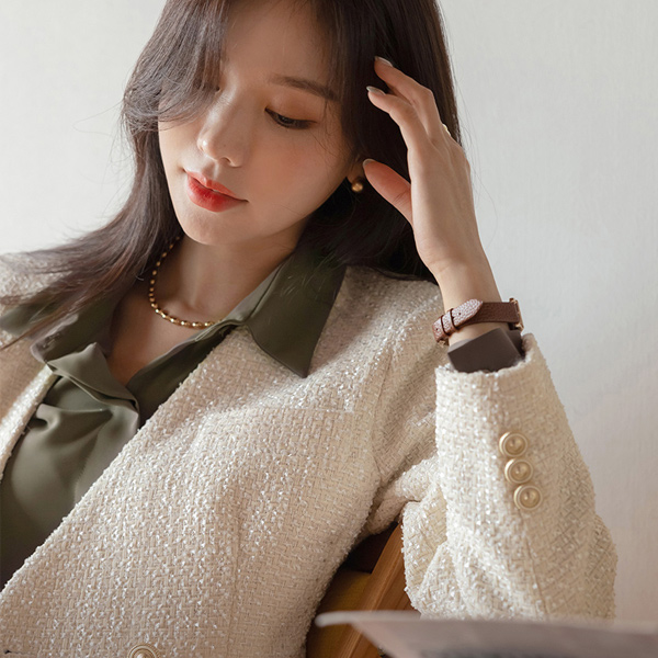 奢华裙 无领 粗呢 夹克