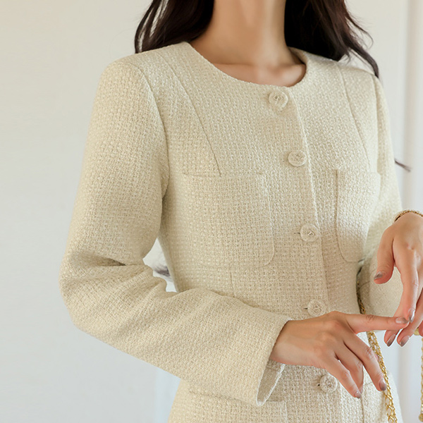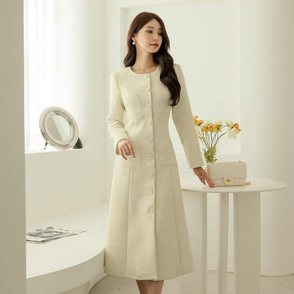 粗呢 长款 喇叭 连衣裙