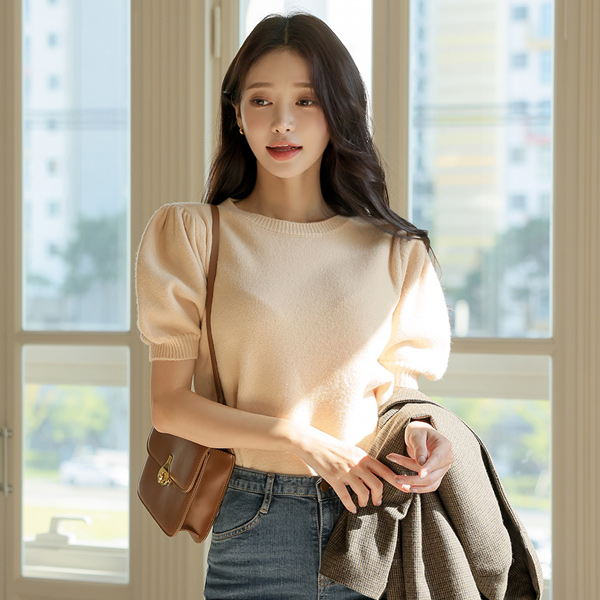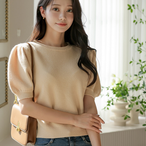 柔软的 泡泡袖 针织t恤