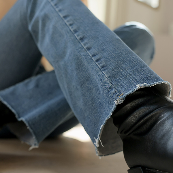 高腰 斯利姆 喇叭 牛仔色 裤子