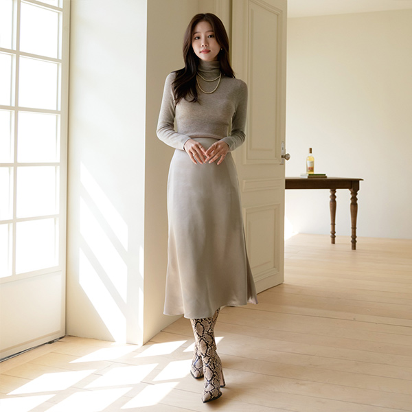 玫瑰色 有光泽 绸缎 长款 裙子